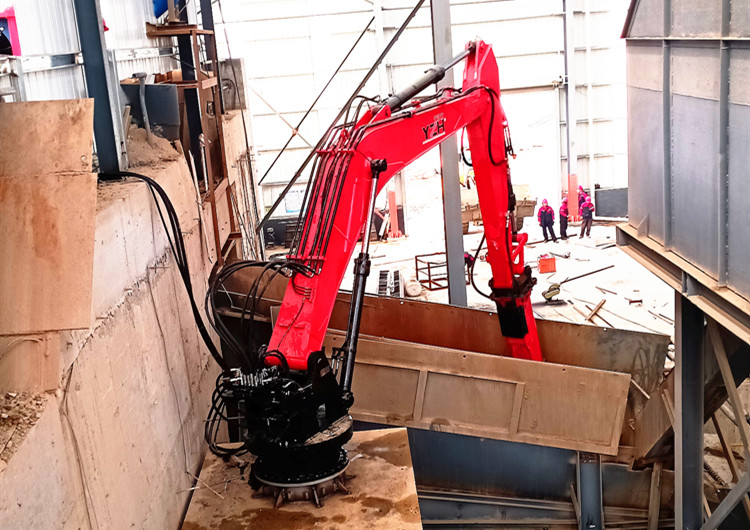 大型礦山破碎大石塊用固定式碎石機(jī)可在任何復(fù)雜工況現(xiàn)場(chǎng)連續(xù)施工作業(yè),在減輕了工人的勞動(dòng)強(qiáng)度的同時(shí),又提高了施工安全系數(shù)。機(jī)械臂可通過(guò)遙控器與遠(yuǎn)程操控臺(tái)遠(yuǎn)程操作,大幅降低了操作難度。