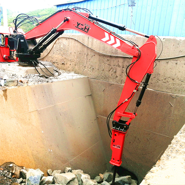 大型礦山破碎大石塊用固定式碎石機(jī)是集機(jī)、電、液于一體的大功率破碎、拆除作業(yè)礦山設(shè)備。固定式碎石機(jī)主要由4個(gè)大部分組成:液壓破碎錘(破碎巖石)、大小臂作業(yè)系統(tǒng)(斗桿)、液壓油站(動(dòng)力來(lái)源)以及控制器(操作系統(tǒng))。