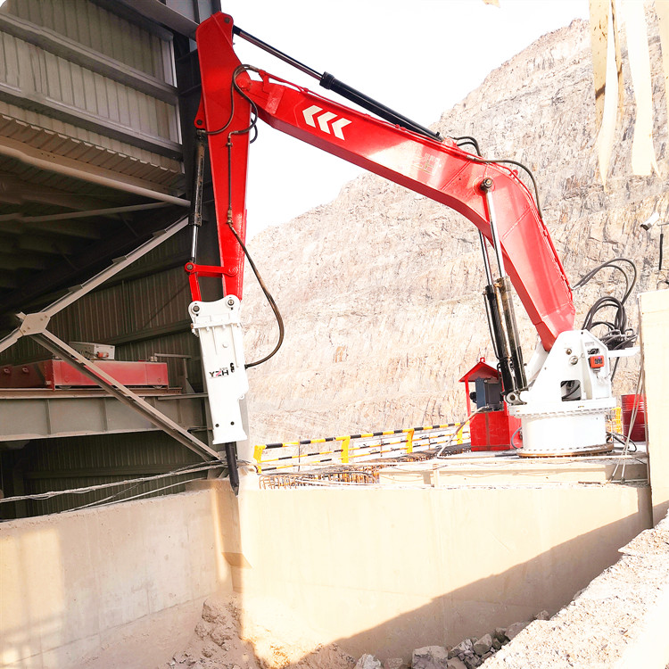 大型礦山用多功能液壓破碎錘可在任何復(fù)雜工況現(xiàn)場(chǎng)連續(xù)施工作業(yè),在減輕了工人的勞動(dòng)強(qiáng)度的同時(shí),又提高了施工安全系數(shù)。機(jī)械臂可通過(guò)遙控器與遠(yuǎn)程操控臺(tái)遠(yuǎn)程操作,大幅降低了操作難度。
