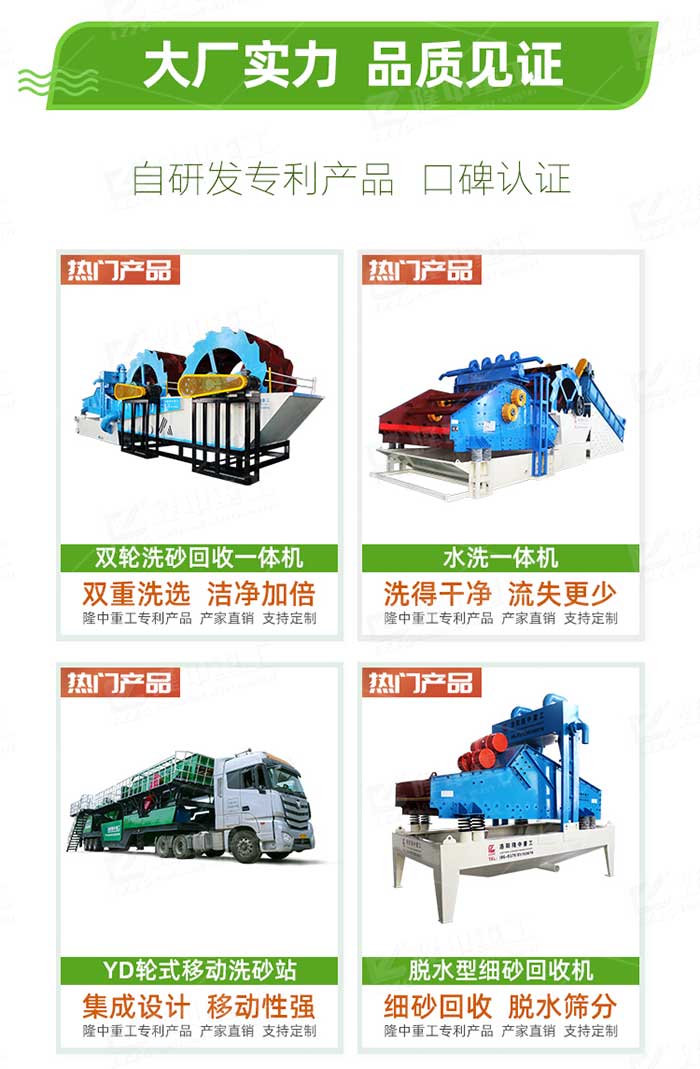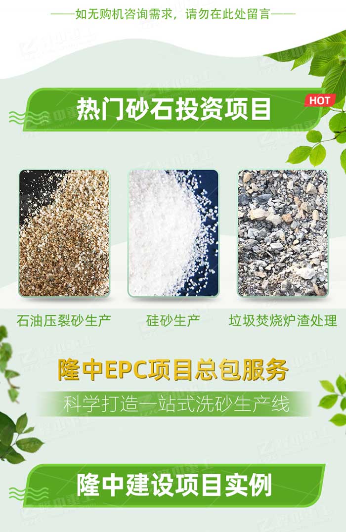 壓裂砂原砂進入料倉存儲,經(jīng)由皮帶機傳送至振動篩或概率篩進行初步篩分,篩分后的原砂>20目的的單獨提取。<20目的經(jīng)由磁選機進行磁選,后進入擦洗機物料經(jīng)過時被充分攪拌沖洗,擦洗掉泥后進入洗砂回收一體機,洗沙輪斗轉(zhuǎn)動,攪拌清洗箱中的物料,進行清洗作業(yè),可除去覆蓋在物料表面上的雜質(zhì),清洗后粗顆粒物料由撈沙輪送至脫水篩脫水。尾水由渣漿泵打入分離器,由分離器將泥沙分離,回收后細料排放至脫水篩篩面和粗料均勻混合脫水后出料。與此同時,分離器處理后的泥水懸浮物排入污水池,再由泵將尾水從污水池打入濃縮罐進行泥水分離作業(yè)。濃縮后的泥漿通過過濾罐底部由泵打入板框壓濾機實現(xiàn)干堆。壓濾后清水進入清水池,實現(xiàn)清水的循環(huán)利用。