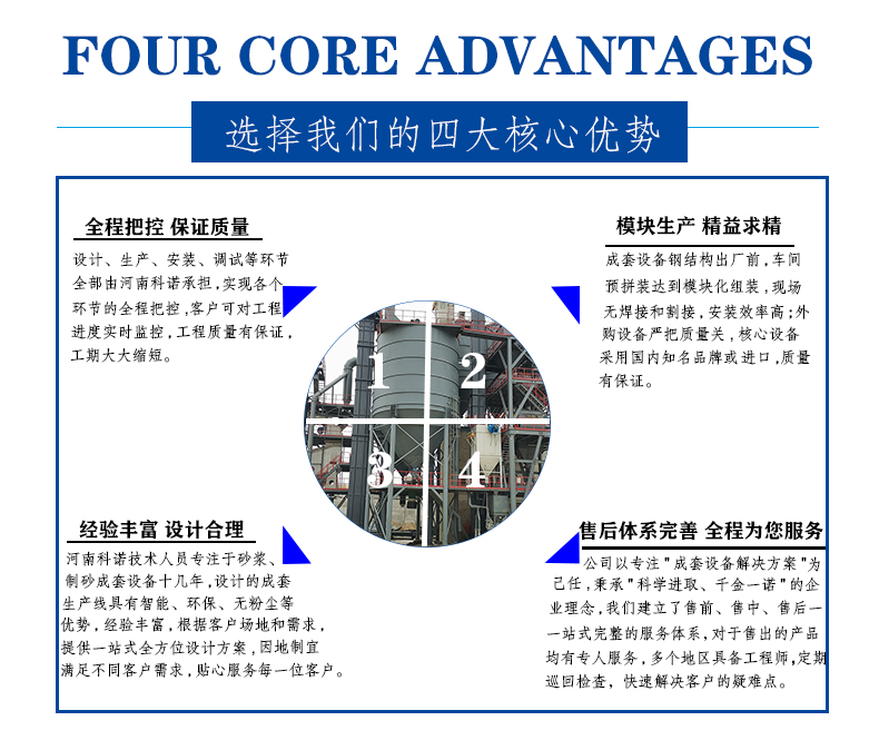 原料可采用廉價易得的尾料、廢料、建筑垃圾、石屑、瓜米石等,采用環(huán)保的干法工藝,生產(chǎn)出媲美天然砂的機制砂,符合建筑用砂標(biāo)準(zhǔn),可用于攪拌站、干混砂漿、水泥制品廠等配套制砂,骨料礦山配套制砂,大型建工項目配套制砂等,可滿足市場對砂的需求,具有優(yōu)厚的投資價值,贏得了多方的贊譽和市場的認(rèn)可。
