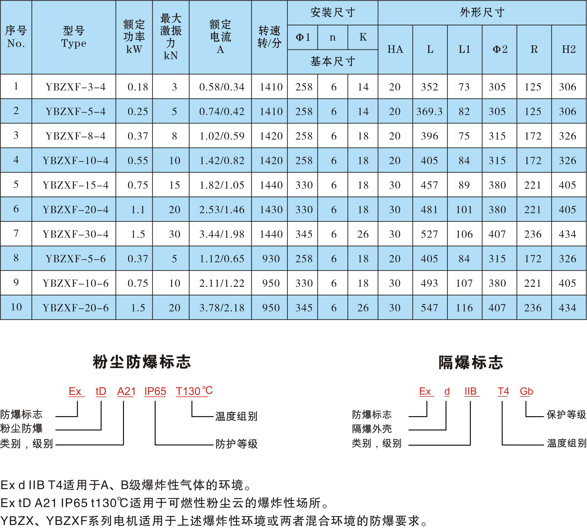 YBZXF礦用防爆振動電機主要用于要求防爆的振動給料機、振動水平輸送機、振動直線篩、高效重型篩、琴弦篩、防閉塞裝置,振動放礦機、調速式電機振動給料機、雙向振動篩等振動機械。