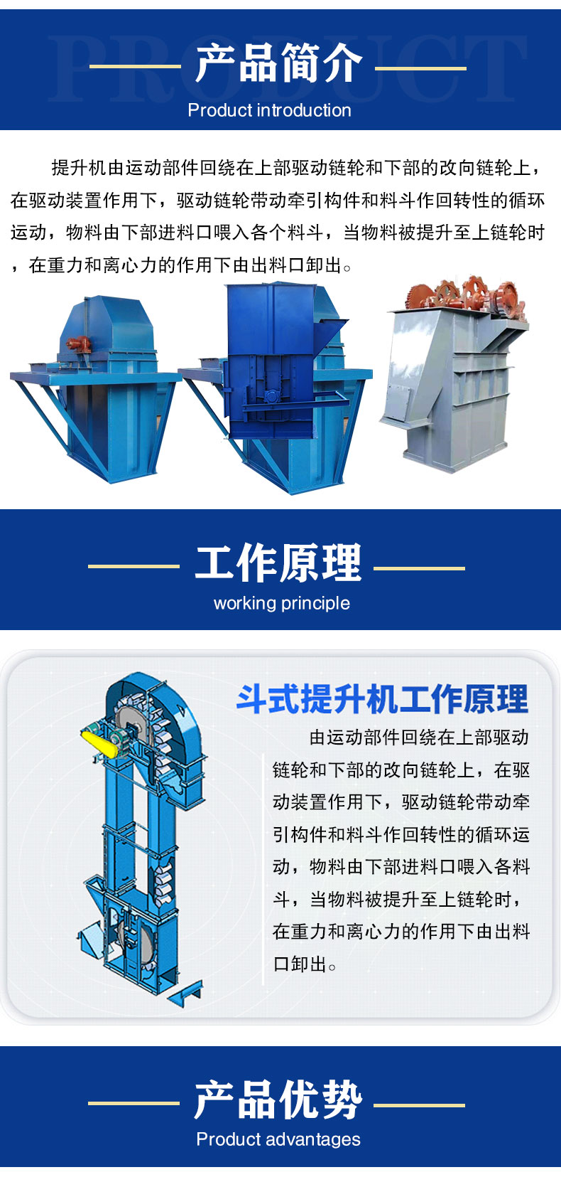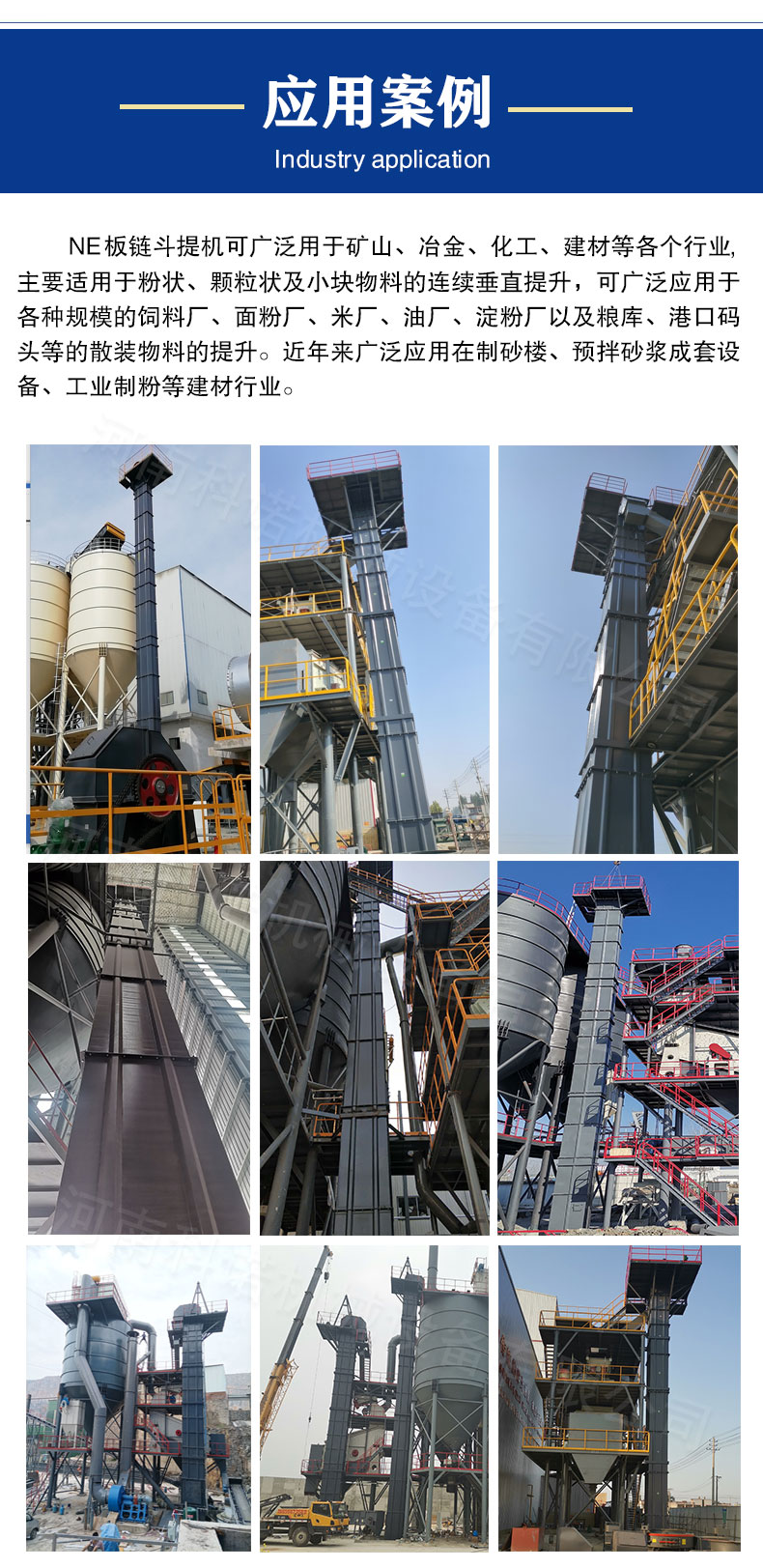 8.操作方便,維修少,易損件少。輸送鏈為套筒滾子鏈,誘導(dǎo)式重力卸料,用于各種粉狀、塊狀物粒的垂直提升。