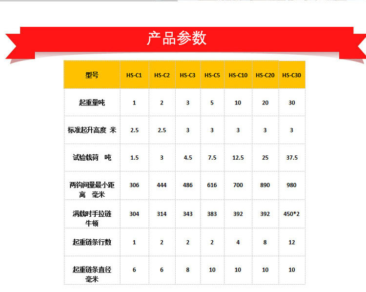 國標獵鷹hs-c304不銹鋼手拉葫蘆參數(shù)
