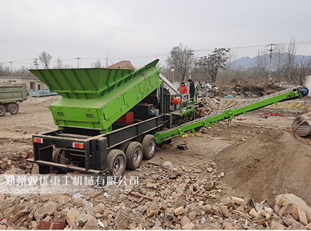 移動土石分離機典型的應(yīng)用如能在河卵石砂石混合料處理生產(chǎn)線前對其進行篩分,篩分出原砂、石子和大塊河卵石,減少后續(xù)設(shè)備的工作量,提高生產(chǎn)線效率;在建筑垃圾處理設(shè)備前,可用于篩分出建筑垃圾中的細料、中等物料和大物料,其中細料和中等物料可直接進行再利用,減少后續(xù)建筑垃圾處理總量,還可在移動土石分離機工作時對建筑垃圾進行人工分揀,撿出其中的大塊雜物,提高建筑垃圾處理后成品料的潔凈度。