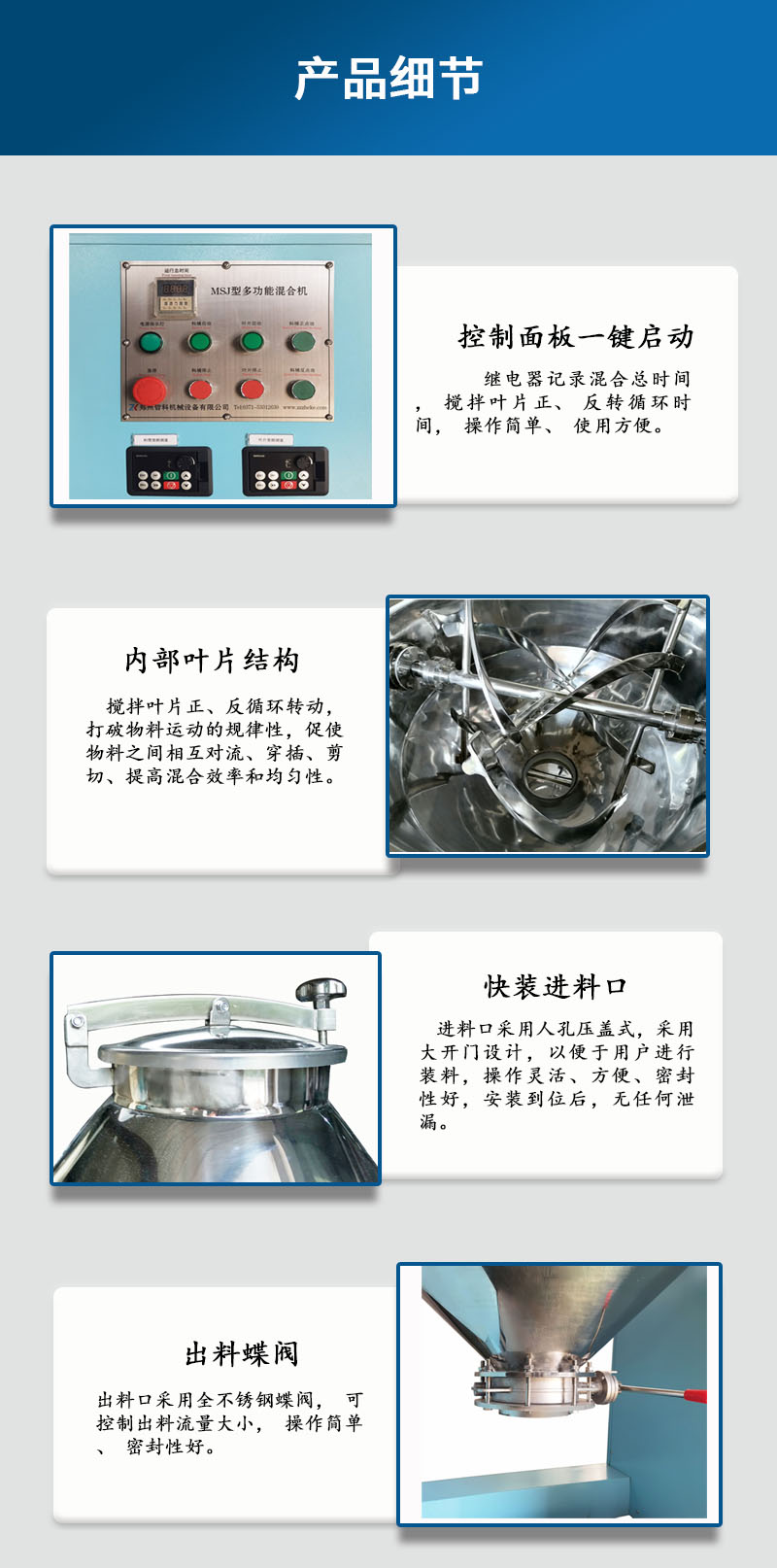3. 料桶有效裝載率達到80%,混合時間短、效率高(傳統(tǒng)混合機裝載率40%)。