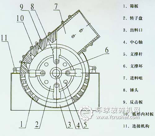 小型錘式破碎機原理: