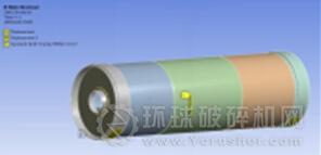 多年來我國的球磨機(jī)設(shè)計生產(chǎn)一直走的是一條仿制的路線,對于設(shè)計理論的研究缺乏必要的重視,造成我國球磨機(jī)的設(shè)計理論尚不完善[1]。通常采用的經(jīng)驗強(qiáng)度計算方法是將球磨機(jī)筒體簡化為簡支梁,然后按平面彎曲變形來計算,由于筒體自身結(jié)構(gòu)復(fù)雜和體積龐大的特點(diǎn),這種算法不能準(zhǔn)確、全面地反映其應(yīng)力和變形規(guī)律[2]。為提高磨機(jī)的設(shè)計質(zhì)量,節(jié)約生產(chǎn)成本,本文利用ANSYS Workbench軟件對磨機(jī)筒體進(jìn)行了有限元分析,根據(jù)筒體的應(yīng)力和變形結(jié)果對筒壁進(jìn)行了合理的減薄,驗證了筒壁厚度減薄方法的可行性。分析結(jié)果表明,此分析方法適合進(jìn)行球磨機(jī)筒體的應(yīng)力及變形分析,可為同類型的球磨機(jī)提供一定分析依據(jù)和方法,對提高我國的球磨機(jī)設(shè)計制造水平具有重大的現(xiàn)實意義。