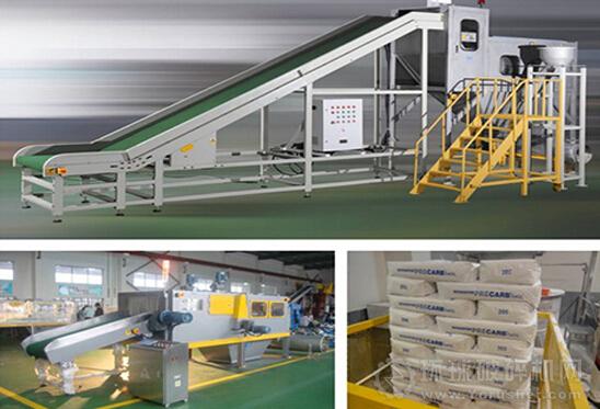 破碎機后自動拆包,物料自動分離并經(jīng)檢測落入下游設備,或進行輸送到指定位置。廢袋自動分離后自動壓縮、自動捆扎、自動打包。拆包過程中產(chǎn)生的揚塵由過濾除塵器凈化過濾達標后排出。