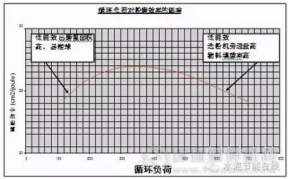 對于任何一個(gè)閉路球磨系統(tǒng)而言,均存在一個(gè)最佳循環(huán)負(fù)荷對應(yīng)最大磨機(jī)產(chǎn)量和最小功率消耗(kWh/t)。增加循環(huán)負(fù)荷可以減少入磨細(xì)粉量,減少細(xì)粉在磨內(nèi)團(tuán)聚的影響。不過,循環(huán)負(fù)荷的增加,會(huì)增加磨機(jī)的物料總通過量,和選粉機(jī)的負(fù)荷,從而降低選粉機(jī)的選粉的效率同時(shí)會(huì)增大磨機(jī)的物料填隙率,降低磨機(jī)的粉磨效率(當(dāng)超過85%的最佳填隙率時(shí))。在一定循環(huán)負(fù)荷下,必須通過試驗(yàn)確定最佳物料填隙率,同時(shí)該值取決于很多參數(shù),包括:磨機(jī)直徑;磨內(nèi)風(fēng)速;選粉機(jī)的效率;粉磨介質(zhì)大小;助磨劑,一倉的