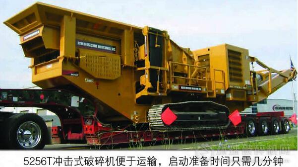 5256T反擊式破碎機是一種重型履帶式水平反擊式破碎設(shè)備,該設(shè)備能有效擊碎天然巖石、混凝土以及瀝青等物料。具有獨特的破碎機卡料清除系統(tǒng), 該系統(tǒng)能使操作者有效破碎超大物料, 而同類型破碎機在此情況下會導致停機。 通過遙控、液壓提升整個破碎機上益以允許超大尺寸或堆疊的物料進入并通過破碎機腔,從而實現(xiàn)清除卡料。該獨家專利設(shè)計的破碎機清除系統(tǒng)能大幅度降低在其他破碎設(shè)備使用過程中經(jīng)常出觀的卡料停機時間, 結(jié)合厚重的一體化機身設(shè)計與知名廠商的零部件使5256T反擊式破碎機能使您輕松度對破碎要求。