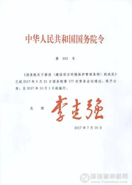 近日,國務院發(fā)布《關于修改〈建設項目環(huán)境保護管理條例〉的決定》,對《建設項目環(huán)境保護管理條例》進行了修改。自2017年10月1日起施行。