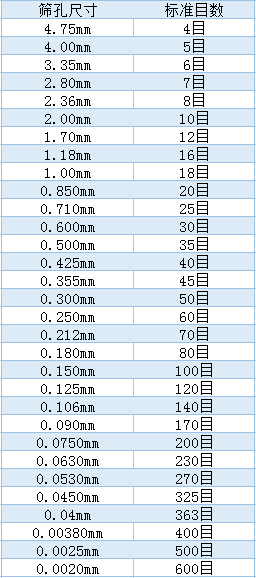 三.振動篩常用目數(shù)/孔徑換算規(guī)格:Φ200×50mm
