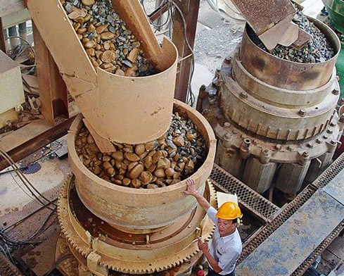 要保證均勻給料,避免大粒徑石料集中于一側(cè),小粒徑石料集中在另一側(cè)的情況。否則一旦給料不均勻,容易發(fā)生堵料,而且會影響調(diào)整環(huán)的使用壽命。