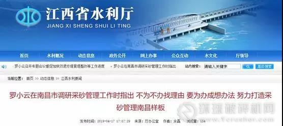 4月17日,江西省水利廳黨委書記、廳長(zhǎng)羅小云帶隊(duì)到南昌贛昌砂石有限公司專題調(diào)研河道采砂管理工作并進(jìn)行座談。羅小云要求,現(xiàn)在就要規(guī)范管理機(jī)制砂,不能讓其演變成非法采砂的一種形式。