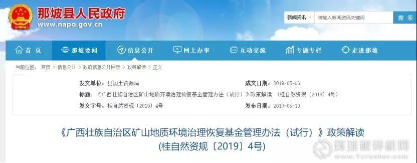 2017年12月原自治區(qū)國土資源廳發(fā)布了《廣西壯族自治區(qū)國土資源廳關(guān)于停止收繳礦山地質(zhì)環(huán)境治理恢復(fù)保證金的通知》(桂國土資發(fā)〔2017〕56號),2018年9月原自治區(qū)國土資源廳、自治區(qū)財政廳、原自治區(qū)環(huán)境保護廳聯(lián)合發(fā)文《廣西壯族自治區(qū)國土資源廳 廣西壯族自治區(qū)財政廳 廣西壯族自治區(qū)環(huán)境保護廳關(guān)于清退礦山地質(zhì)環(huán)境恢復(fù)保證金有關(guān)事項的通知》(桂國土資發(fā)〔2018〕65號),明確要求退還礦山企業(yè)的礦山環(huán)境治理恢復(fù)保證金,以基金的方式籌集治理恢復(fù)資金。
