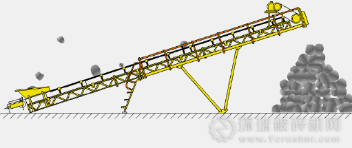 (3)采用卸料小車卸料時(shí),因輸送帶進(jìn)入卸料小車處的實(shí)際傾角較大,帶速不宜過高,一般不超過3.15m/s。