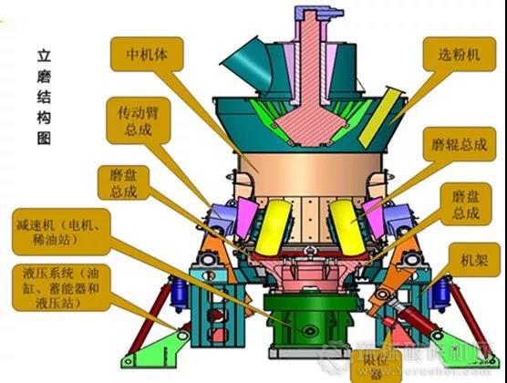 從磨機(jī)的工作原理可知,立磨在工作時(shí)是通過(guò)磨輥施加壓力來(lái)