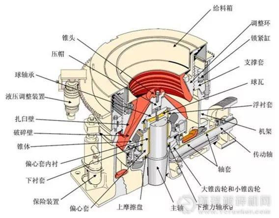1)吊出偏心套,對(duì)圓錐破碎機(jī)的直形襯套和錐形襯套磨損的部分進(jìn)行研磨,以保障摩擦表面的光潔度;
