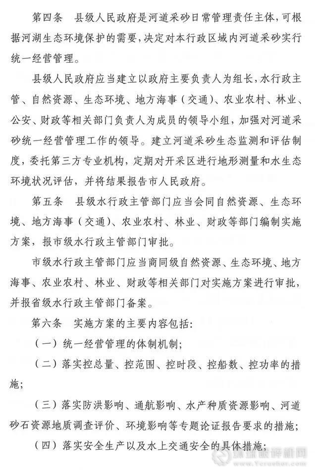 日前,《岳陽市河道采砂統(tǒng)一經營管理辦法》正式發(fā)布,該市河道采砂統(tǒng)一國營有了法規(guī)依據(jù)。