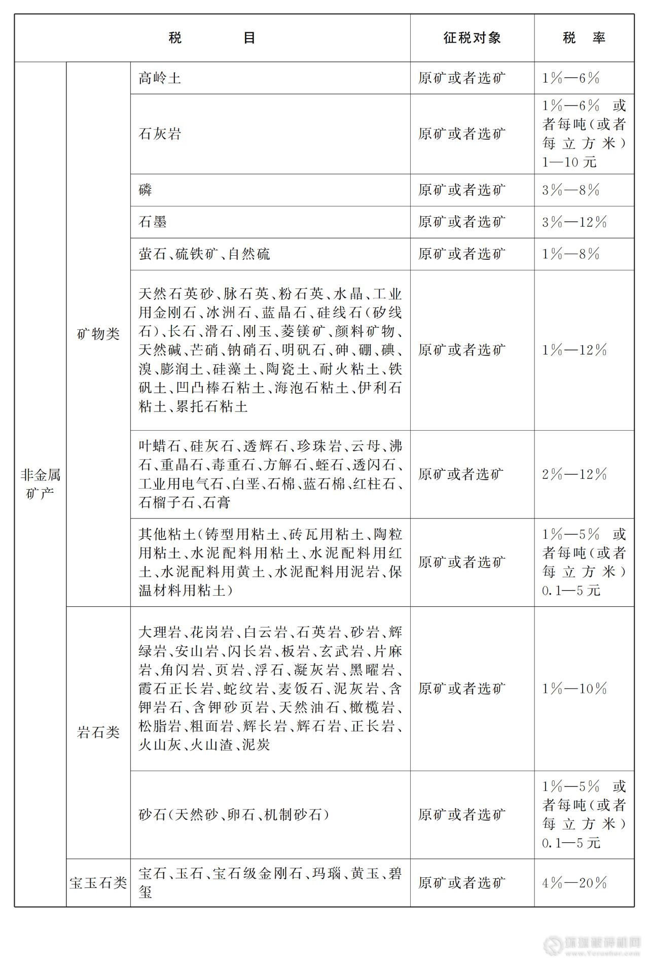 附表:資源稅稅目稅率表(以國家有關(guān)部門發(fā)布的正式法律文本為準)