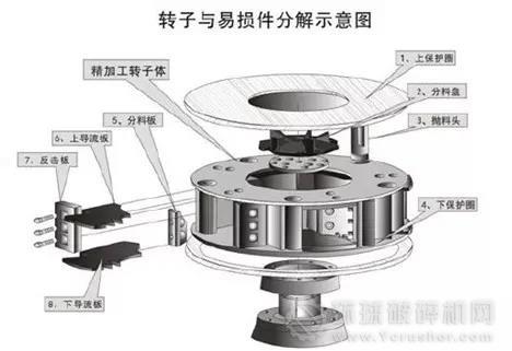 如果轉(zhuǎn)子內(nèi)部積料理想,那么對上下磨損板的磨損應(yīng)是均勻的,轉(zhuǎn)子拋料頭能得到充分利用,進而降低生產(chǎn)消耗。如果不是,那就需要以下的調(diào)整原則和方法了。