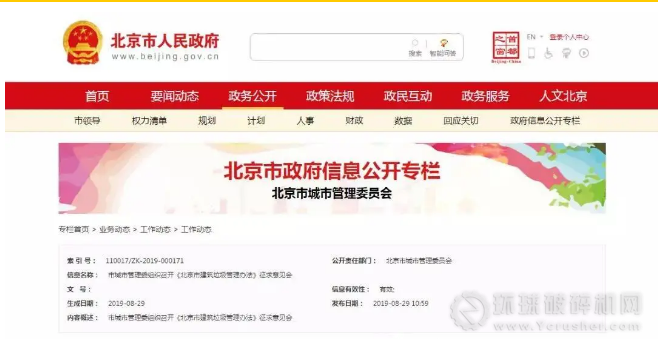 2020年1月2日,北京市城市管理委員會網(wǎng)站發(fā)布公告,對《北京市建筑垃圾管理辦法(草案送審稿)》公開征求意見。