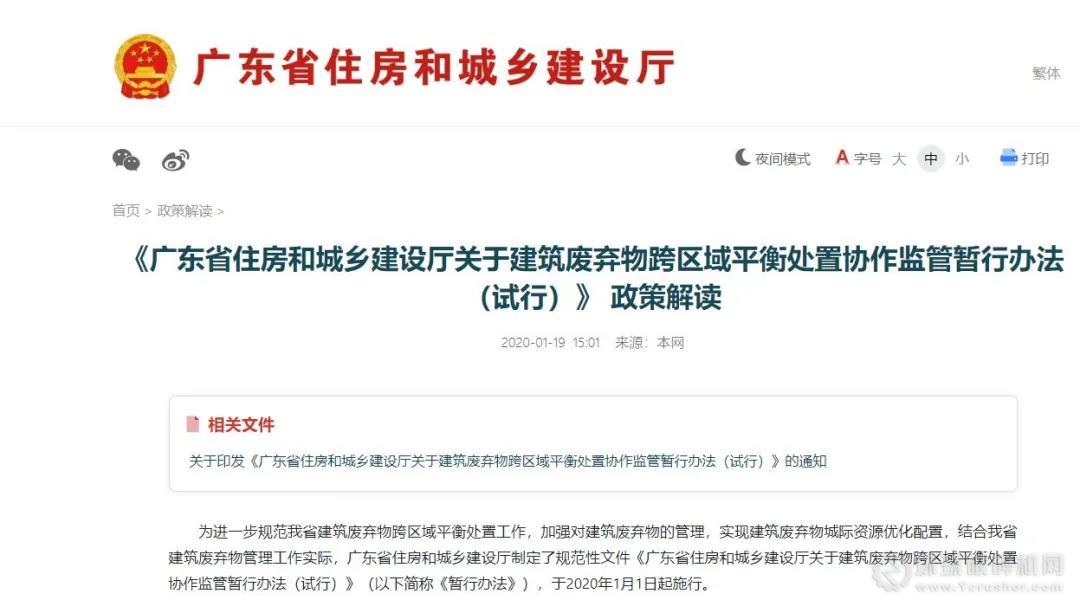 為進(jìn)一步規(guī)范我省建筑廢棄物跨區(qū)域平衡處置工作,加強(qiáng)對建筑廢棄物的管理,實現(xiàn)建筑廢棄物城際資源優(yōu)化配置,結(jié)合我省建筑廢棄物管理工作實際,廣東省住房和城鄉(xiāng)建設(shè)廳制定了規(guī)范性文件《廣東省住房和城鄉(xiāng)建設(shè)廳關(guān)于建筑廢棄物跨區(qū)域平衡處置協(xié)作監(jiān)管暫行辦法(試行)》(以下簡稱《暫行辦法》),于2020年1月1日起施行。