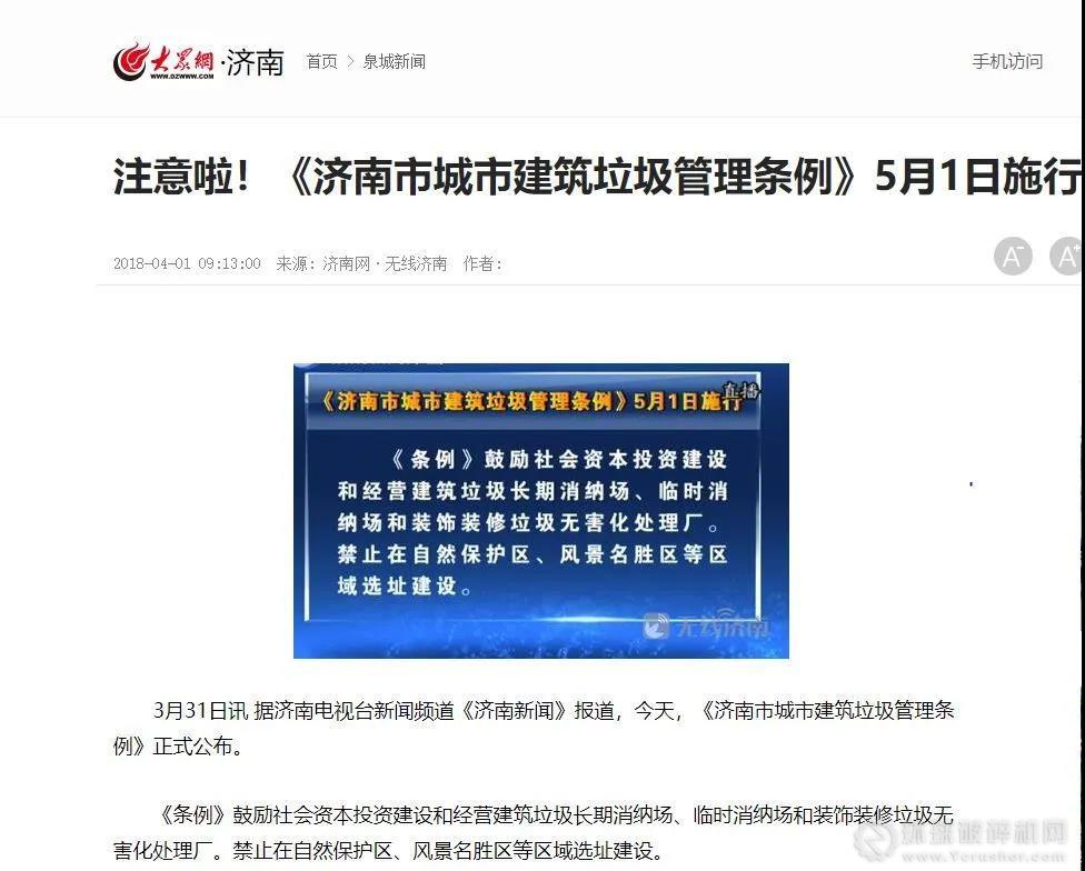 山東濟(jì)南推進(jìn)建筑垃圾資源化利用,2020年利用率達(dá)到60%以上