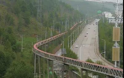輸送機(jī)系統(tǒng)大部分采用鋼結(jié)構(gòu)架空棧橋形式,沿途跨越山谷、公路、河流和其他設(shè)施,其架空高度滿足國家規(guī)定的限界要求,不影響原有設(shè)施的建設(shè)和道路通行。帶式輸送機(jī)全程設(shè)彩鋼板密封,全程物料無裸露輸送,不受雨水、風(fēng)、雪等氣候條件影響,避免了粉塵和噪聲污染。輸送系統(tǒng)中設(shè)有轉(zhuǎn)運(yùn)站、驅(qū)動(dòng)站房和變電站,位置盡量靠近公路且在與現(xiàn)有公路的交匯點(diǎn)附近,方便安裝運(yùn)輸和日常維護(hù)。