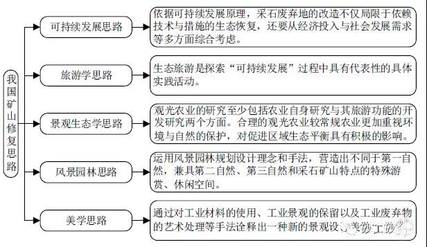 4)礦山公園模式??梢詫U棄礦山基于反映礦業(yè)開采過程的目的進(jìn)行改造,并結(jié)合對(duì)礦山開采后植被環(huán)境的修復(fù),為人們展示礦業(yè)發(fā)展的歷史脈絡(luò),起到科學(xué)考察、科普教育的作用。