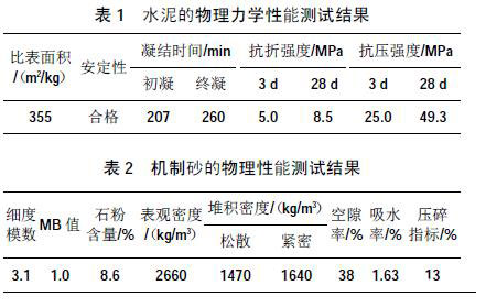 砂(S):鵝卵石破碎機(jī)制砂,產(chǎn)地為江蘇揚(yáng)中,其物理性能見表2;