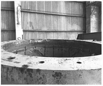 破碎機(jī)頻繁過鐵容易造成破碎機(jī)動、定錐襯板裂紋,從而縮短襯板使用壽命,增加備件消耗。動錐襯板裂紋如圖1所示。