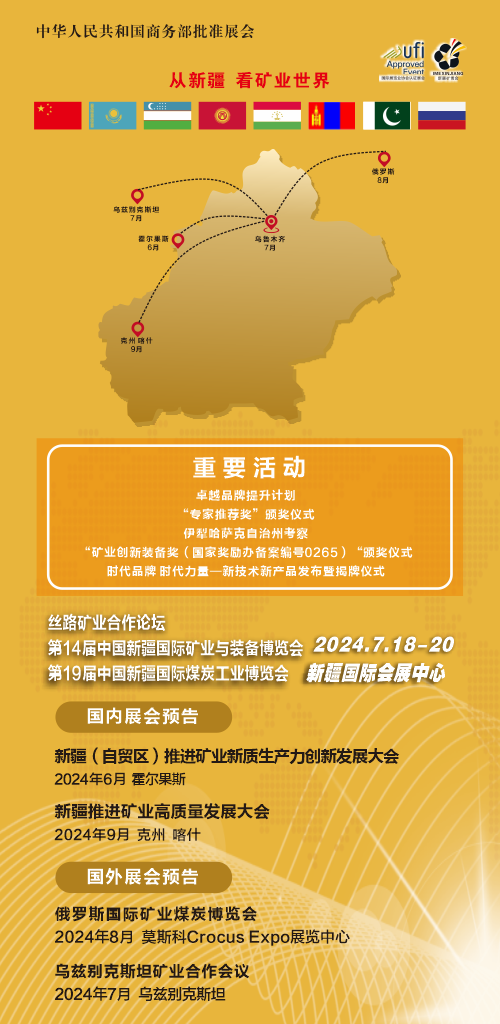 “絲路礦業(yè)合作論壇及第14屆中國新疆國際礦業(yè)與裝備博覽會”、“第19屆中國新疆國際煤炭工業(yè)博覽會”立足新疆資源稟賦、區(qū)位優(yōu)勢及政策優(yōu)勢,致力于為礦業(yè)、煤炭、能源產(chǎn)業(yè)發(fā)展搭建一個高效務(wù)實(shí)的溝通合作平臺,為新時代新征程加快科技創(chuàng)新,發(fā)展新質(zhì)生產(chǎn)力提供堅(jiān)強(qiáng)支撐,賦能行業(yè)高質(zhì)量發(fā)展。