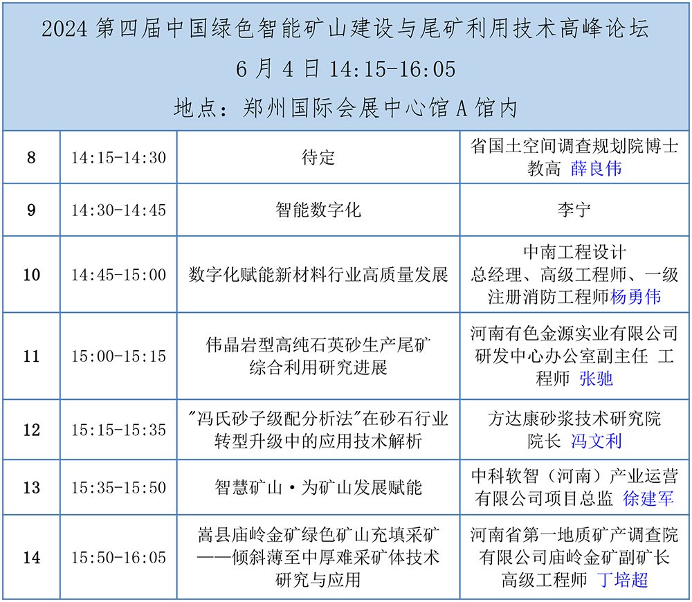 礦山機(jī)械、砂石裝備、尾礦處理前沿動(dòng)態(tài)。屆時(shí),將有14場(chǎng)論壇報(bào)告,為參會(huì)者帶來一場(chǎng)知識(shí)的盛宴。